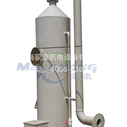 塔內(nèi)填料層作為氣液兩相間接觸構(gòu)件的傳質(zhì)設(shè)備;填料塔底部裝有填料支承板,填料以亂堆方式放置在支承板上。氣體從塔底(或一側(cè))送入,經(jīng)氣體分布裝置分布后,與液體呈逆流(或截流)連續(xù)通過填料層的空隙,在填料表面上,氣液兩相密切接觸進行傳質(zhì),待處理氣體經(jīng)傳質(zhì)作用進入循環(huán)液體中與塔筒體內(nèi)壁的水霧和水膜接觸而被水滴、水膜黏附捕獲,并隨筒壁不斷更新的水膜向下排出水洗塔,從而使含塵廢氣得以凈化排放,上升的氣體在塔上層除霧器作用進行除濕干燥后排放或者進入下道工藝。水洗塔底部設(shè)有循環(huán)水箱,通過循環(huán)水泵不斷將水循環(huán)送入塔內(nèi),根據(jù)水箱內(nèi)水質(zhì)情況定期更換清水或補水。